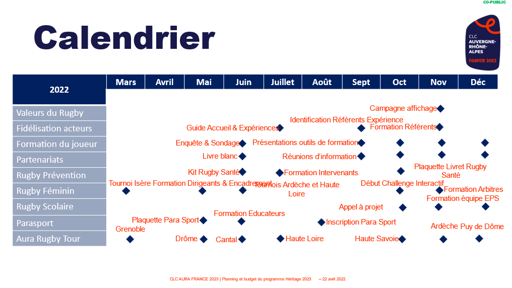 - La Ligue de Rugby Auvergne Rhône Alpes pour la définition et le pilotage de son projet Héritage 2023 en lien avec la Coupe du monde de Rugby 2023